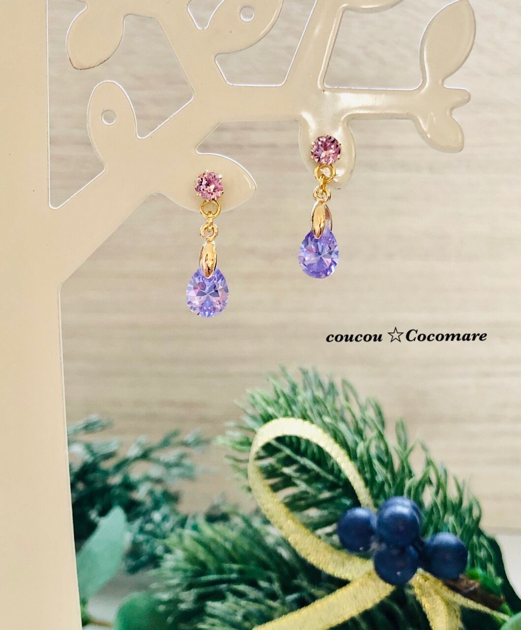 4㎜サイズのスワロフスキーピアスにキュービックジルコニアドロップを飾り付けたシンプルで可愛いピアスです。