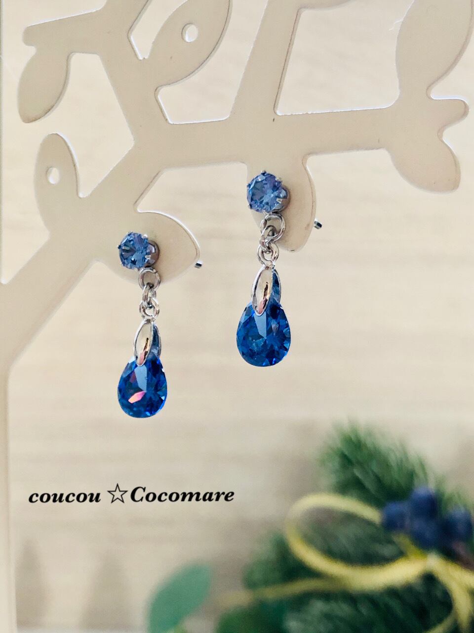 キュービックジルコニアのドロップピアス【フローズンブルー】サージカルステンレス
