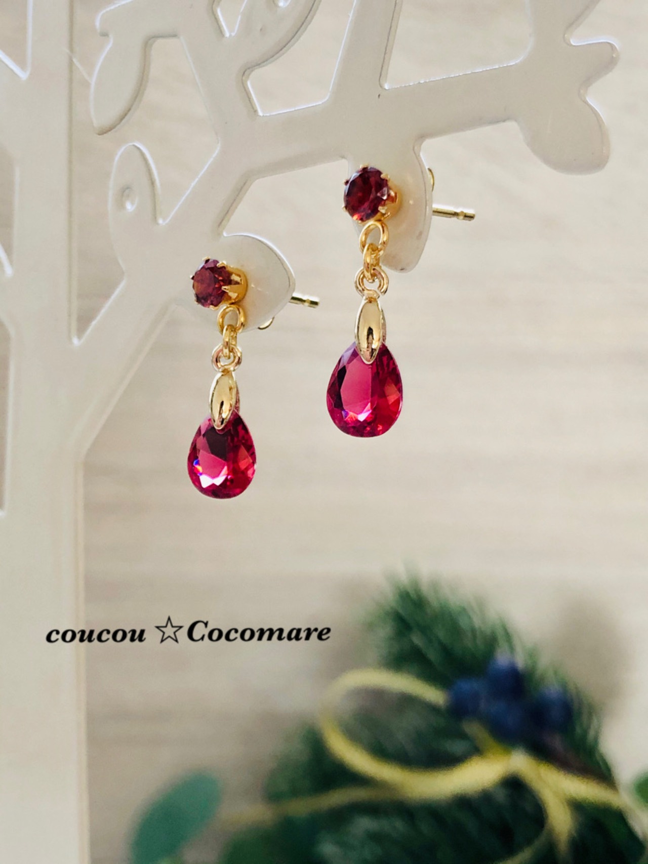 石付サージカルステンレスとドロップピアスの組み合わせは他にはないデザインで、どんなシーンにも合わせて身につけて頂けます。
