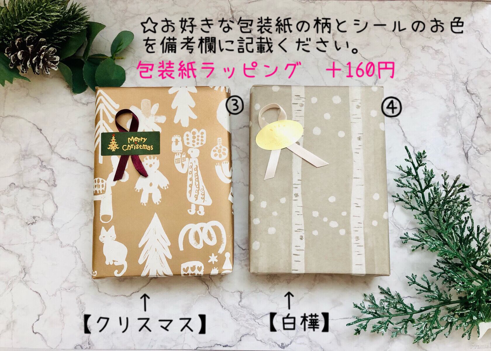 包装紙ラッピングの包装紙柄については【ラッピングのお知らせ】で出品しております画像を参照ください。